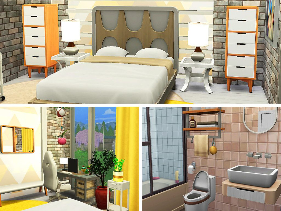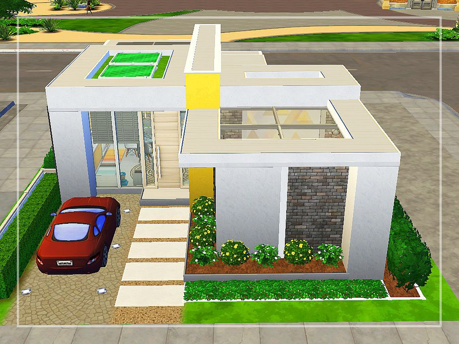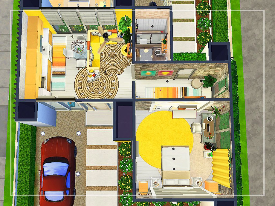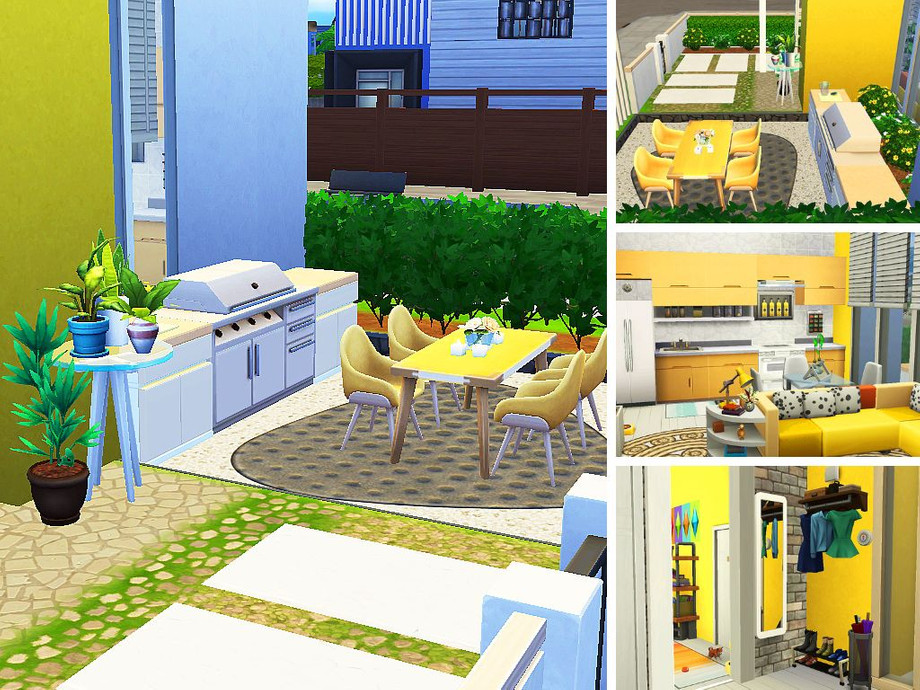 Small* Yellow House for 1 or 2 sims (+ a small dog) from Evergreen Harbor (no CC)