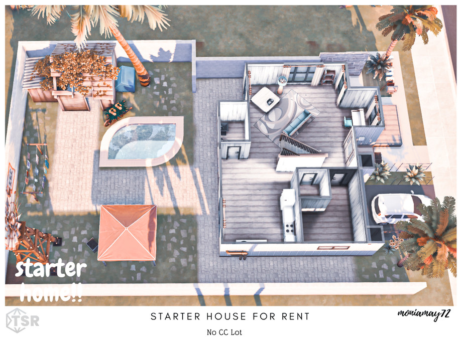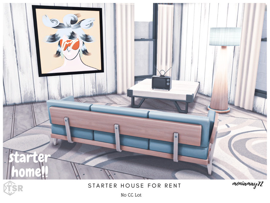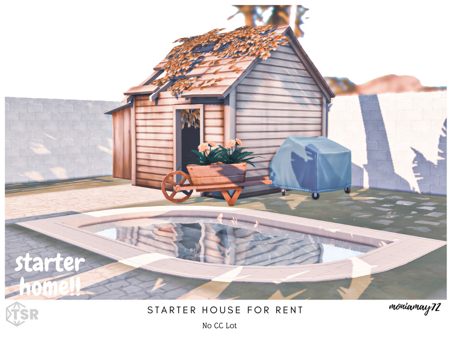 Size 30 on 20. It contains 2 bedrooms and 1 bathrooms. It cost only 18k simoleons.