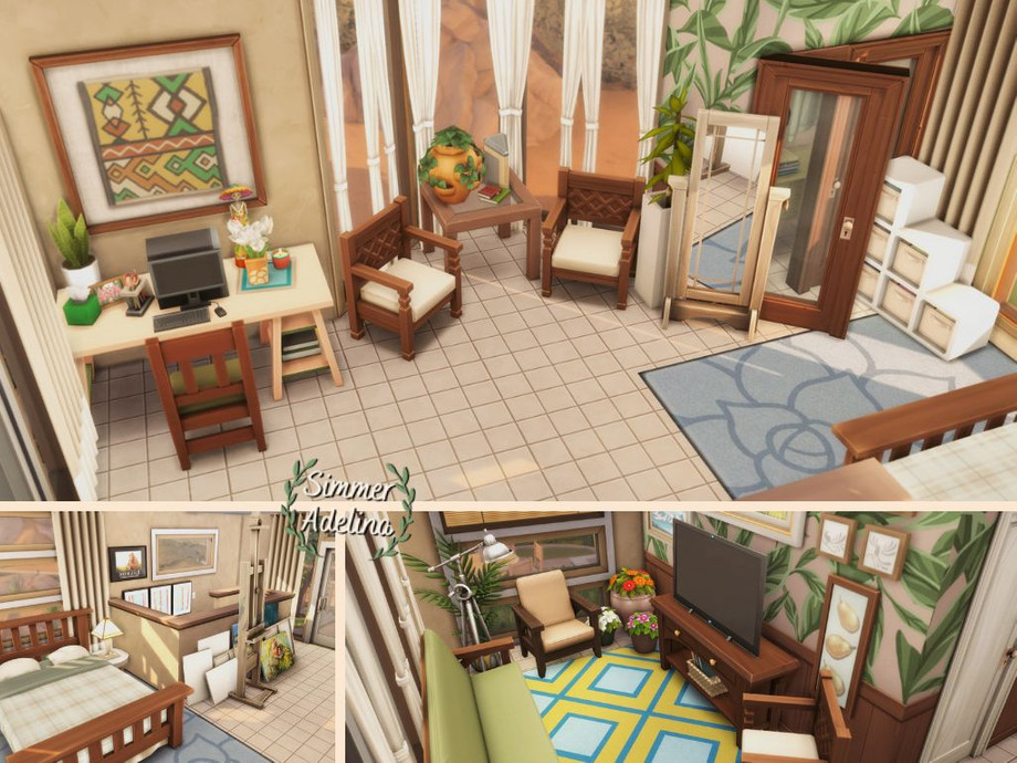 Lot's Placement: Oasis Springs, Sandtrap Flat. This house is perfect for 2 sims who love warm weather and greenary. This home has a bedroom and bathroom, 2 porches, a balcony and plenty of green space. I hope you'll ENJOY it!!! --- PLEASE DON'T FORGET ABOUT MOVE OBJECTS ON BEFORE PLACING---