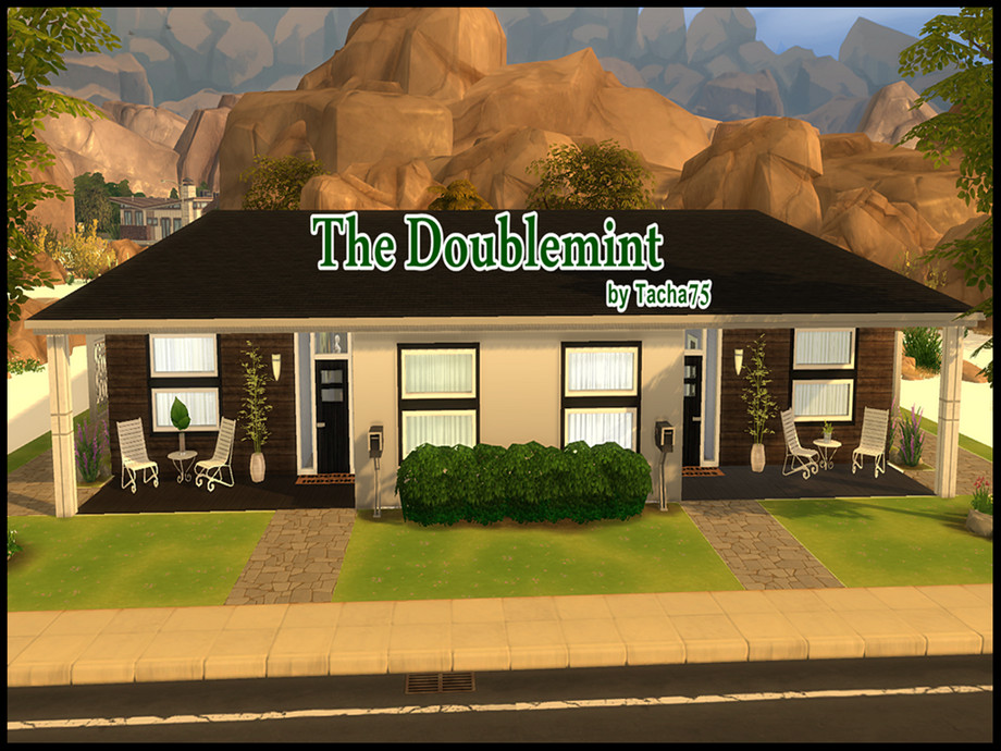 Duplex living for your Sims. Each side has a living area, kitchen with dining area, 2 bedrooms, 1 full bath. Each side has a separate back patio with seating and a grill. The pool is shared by both sides but each has its own "hot tub".