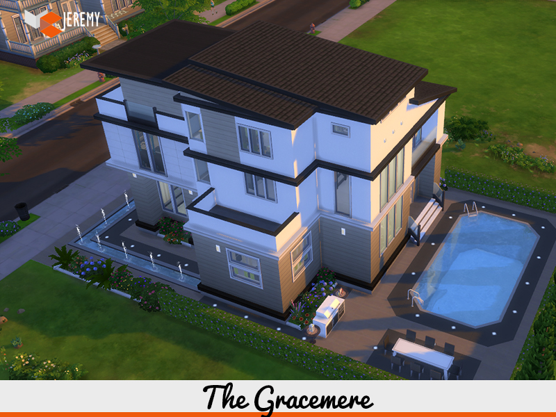 A Perfect City House for your Sim family . It has 3 bathrooms, 3 bedrooms, kitchen, Bar, dining area, livingroom, study room, pool and BBQ area.