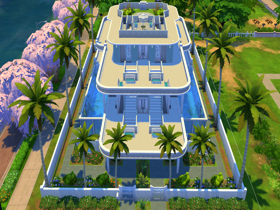 The Terraces Residence is a modern house, developed in three levels, ideal for a big family. In the first floor there is the entrance, with dining and sofas area, an exterior access to the outside/elevated pool and a wide and complete gym. In the ground floor, there is the kitchen, dining table and living area with TV. In this floor there are also two guest bedrooms, perfect for some friends of your Sims to stay at night, and four bathrooms. In the second floor there is the master bedroom, with two dressing room and two bathrooms. There are two kids bedroom too. In each level, there is a terrace which surround the whole house, with some relax areas. On the upper terrace, smaller than the other ones, there is also a private mini pool (the idea was of a mini exterior jacuzzi) and a barbecue area. The house is fully furnished and fully decorated. Hope you like it!
