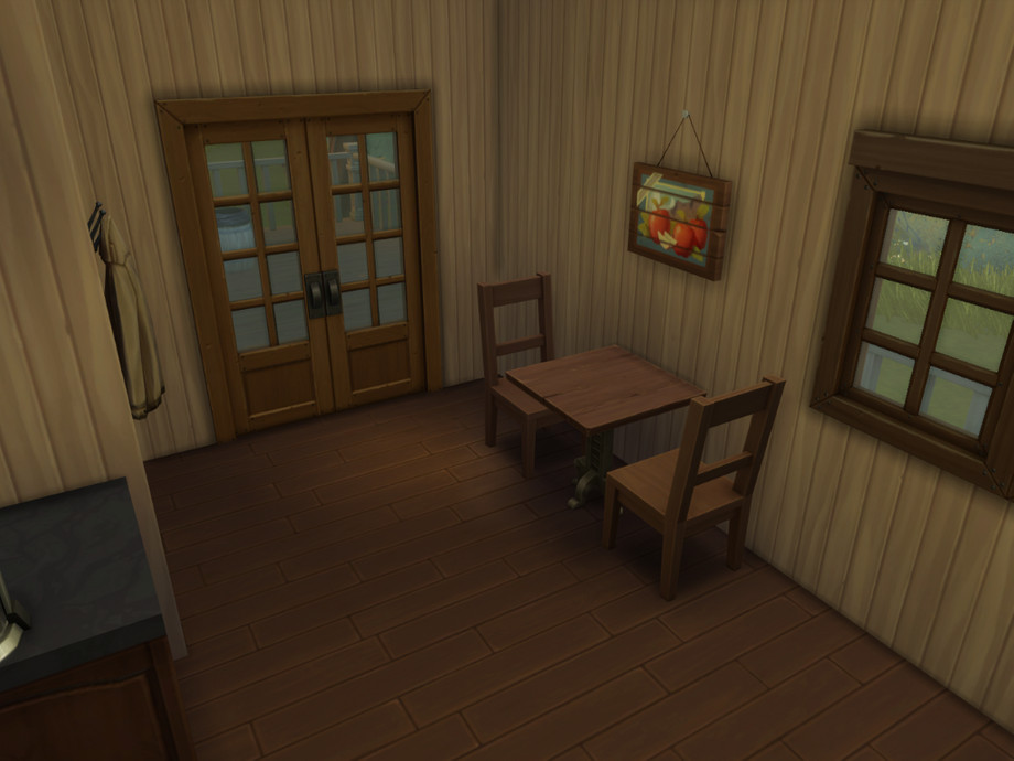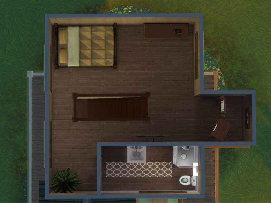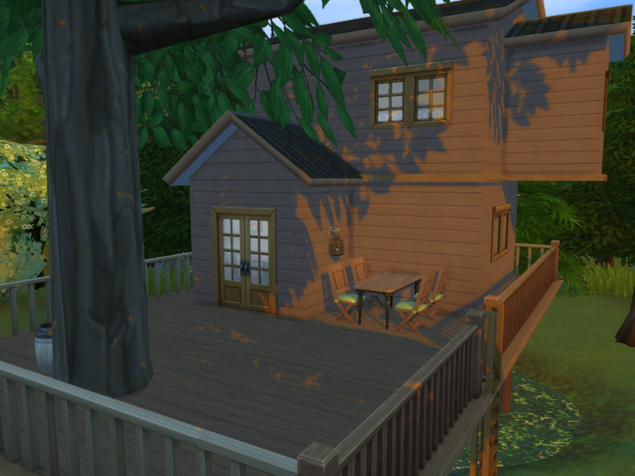 A cozy tree house, perfect for 1 or 2 Sims. It has a large terrace,a natural pool and a fishing pond nearby. The 1st Floor has a small kitchen combined with a living area. The 2nd Floor has a lovely bedroom and a small bathroom.