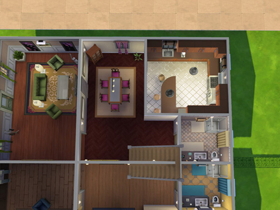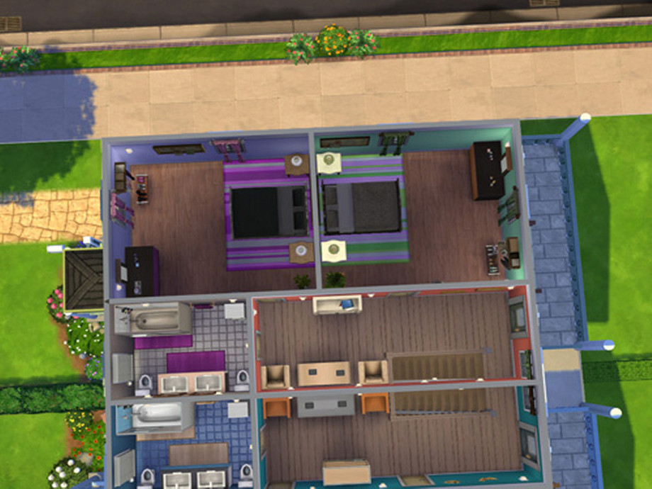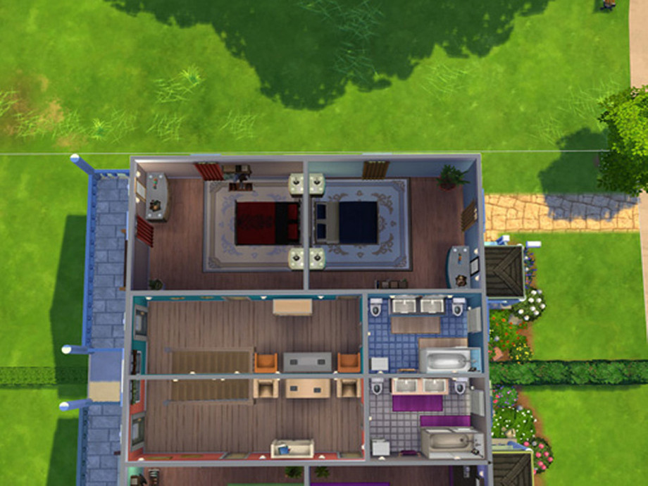 Side by side, these twin homes are perfect for Sims just starting out - instant neighbors! Each home features two bedrooms and two bathrooms for a total of four.