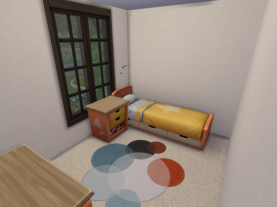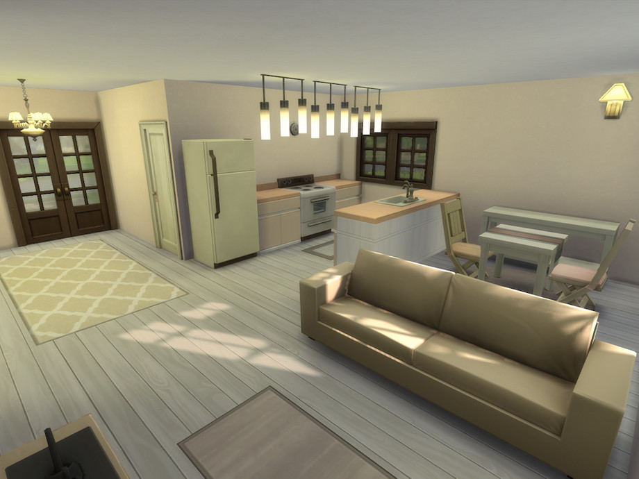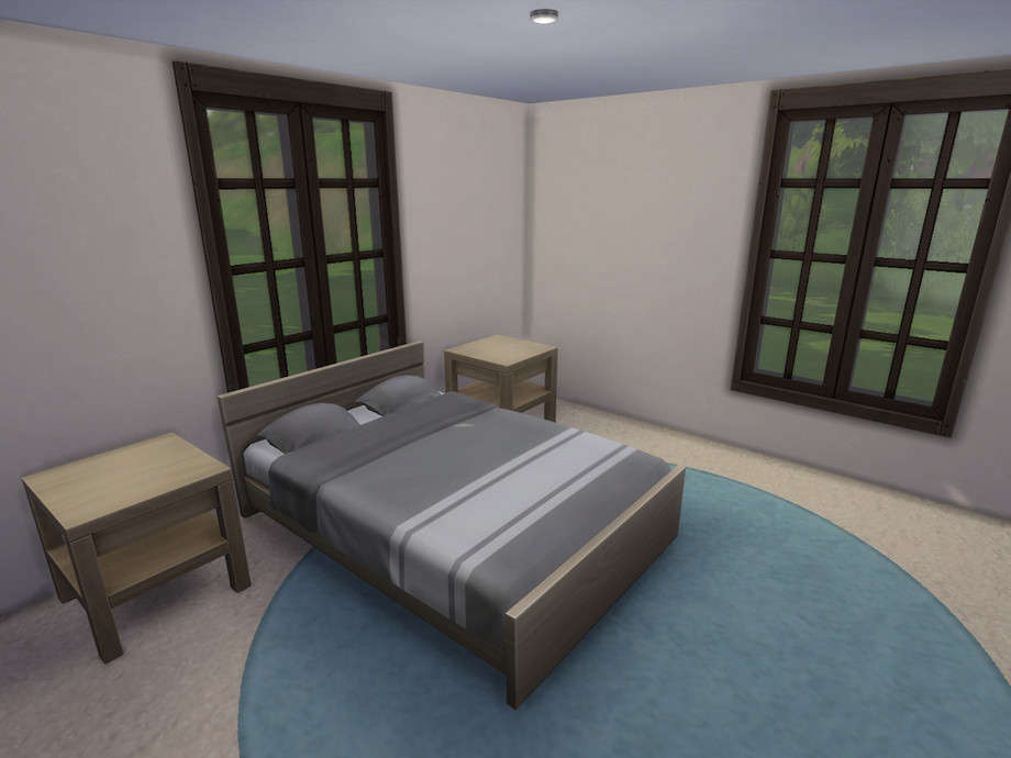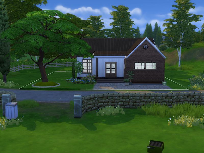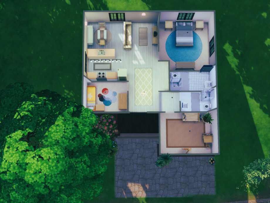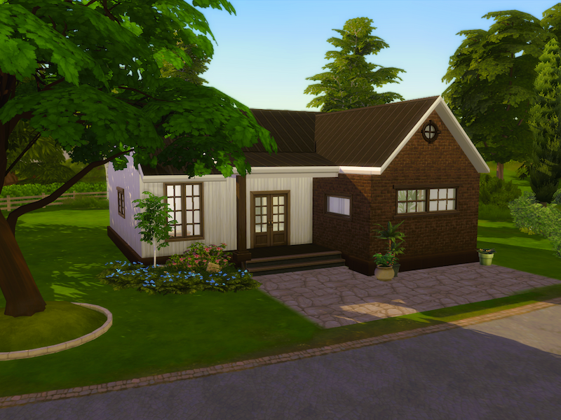 This is a starter home, I built using only base game items. It has 3 potential bedrooms and 2 full bathrooms.