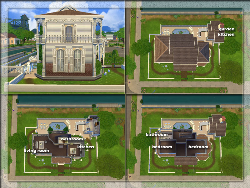 This house is for your rich simmies :D This villa has 2 bedrooms, a study room and a bathroom on the upstairs. There is a living room, kitchen and a bathroom on the downstairs. In the garden, there is an ornamental pool with lilies and a garden kitchen. :) I hope you like it :)