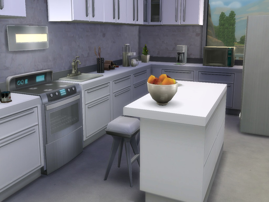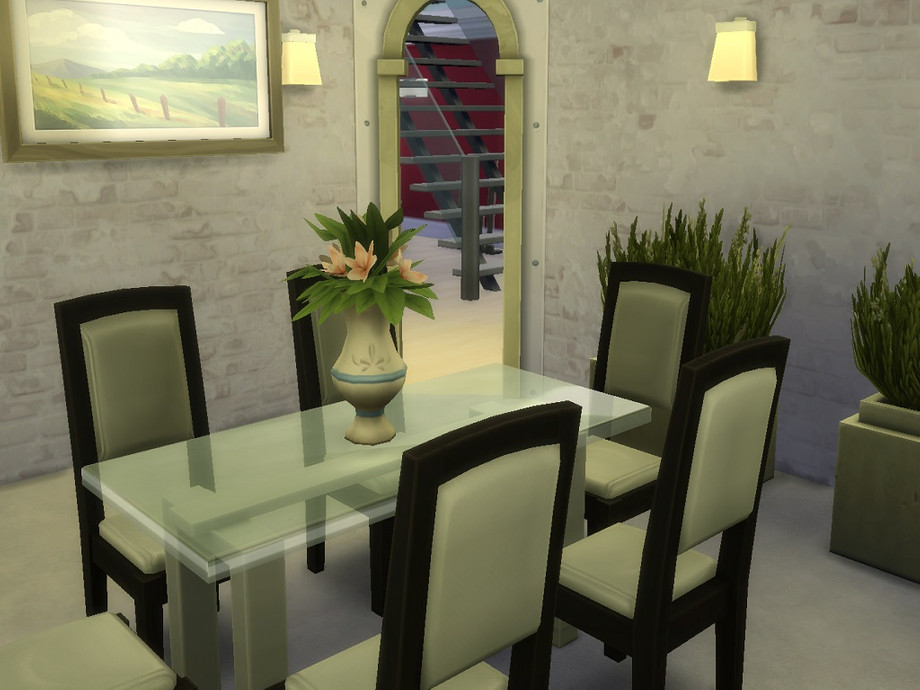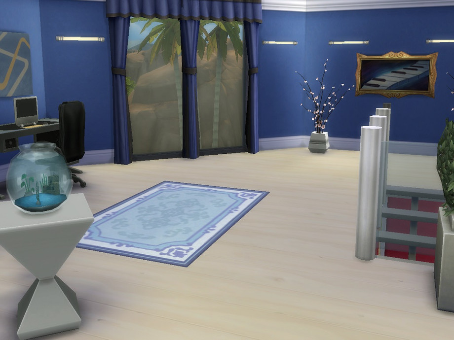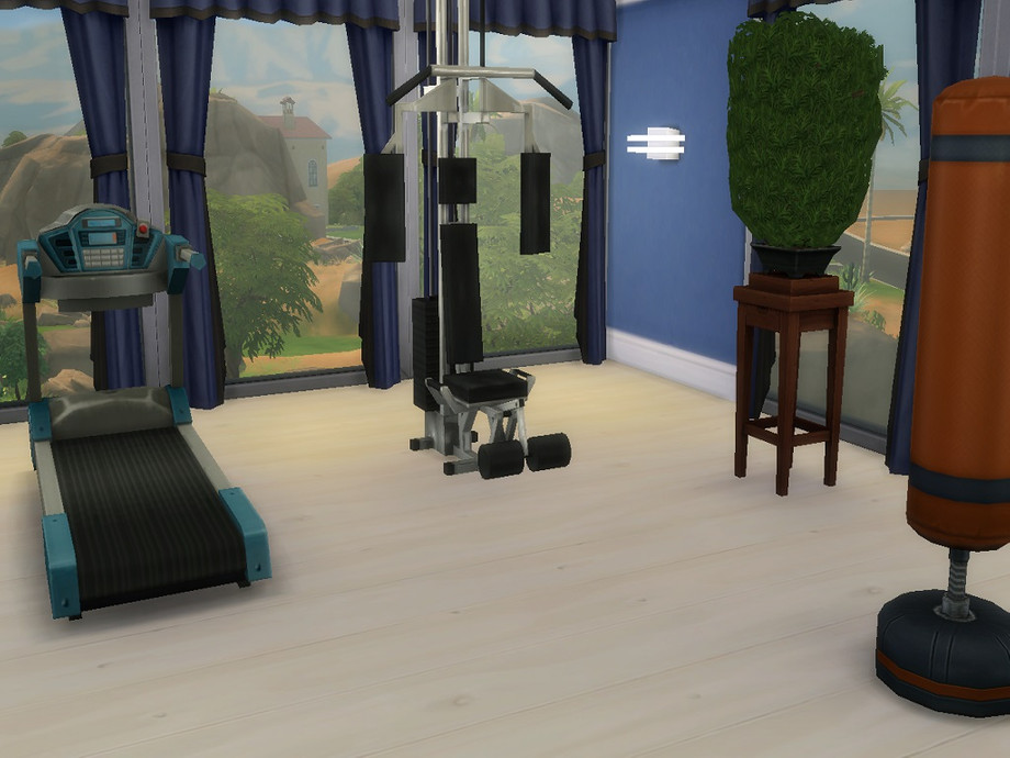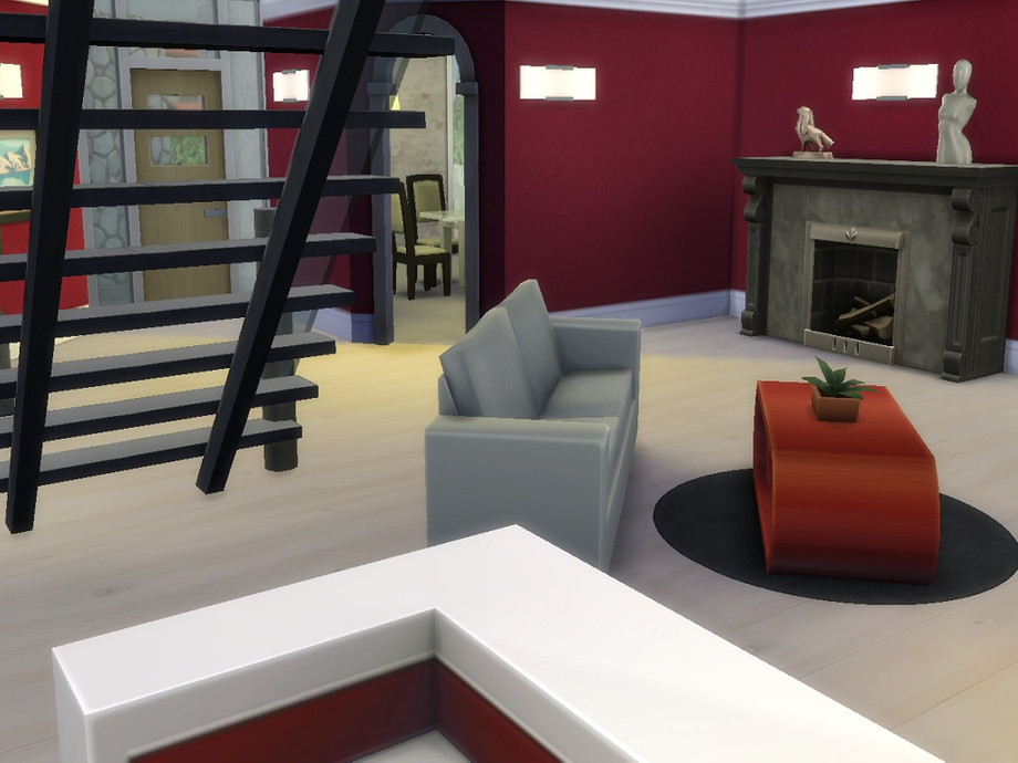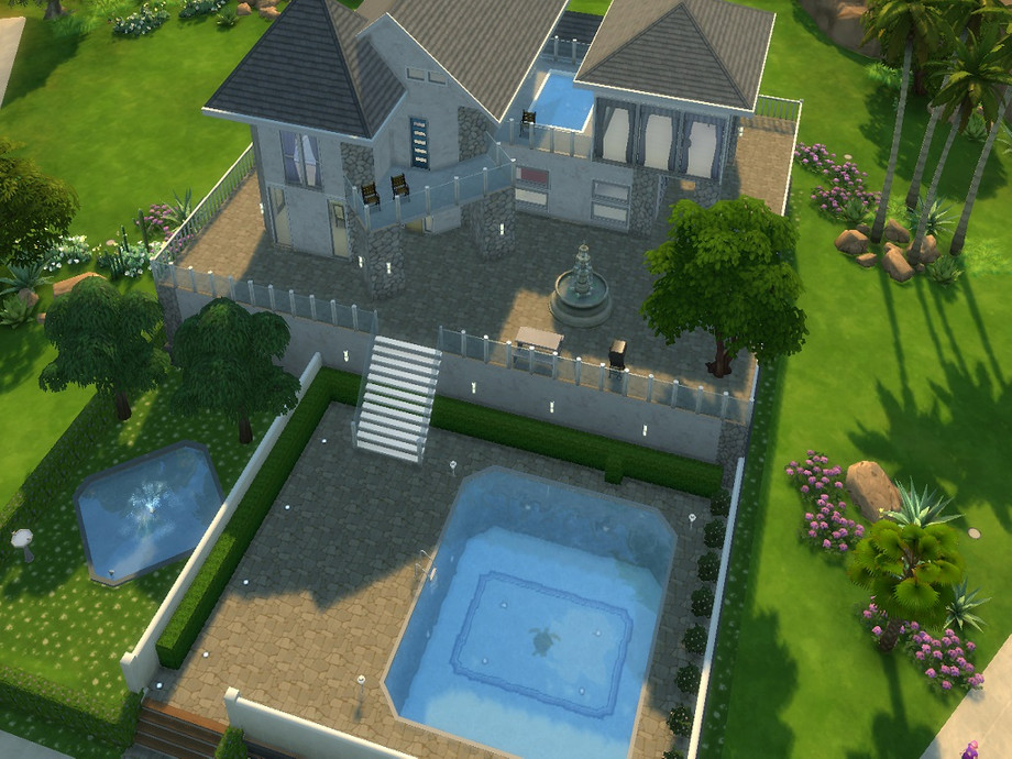 Hello,this is my first Sims 4 house.House is availble for 2 or 3 Sims.Outside you have a large pool which is big enough for more people and fontain decoration.Inside house at downstairs I made large living room which is enough for using 2 people together with dining room which table is for 6 people,kitchen and bathroom are separated.Upstair I made large study room together with bedroom and study room which can be useful for playing,making some parties and other things.In front of study room you have pool at balcony and gymnastic room which is separated