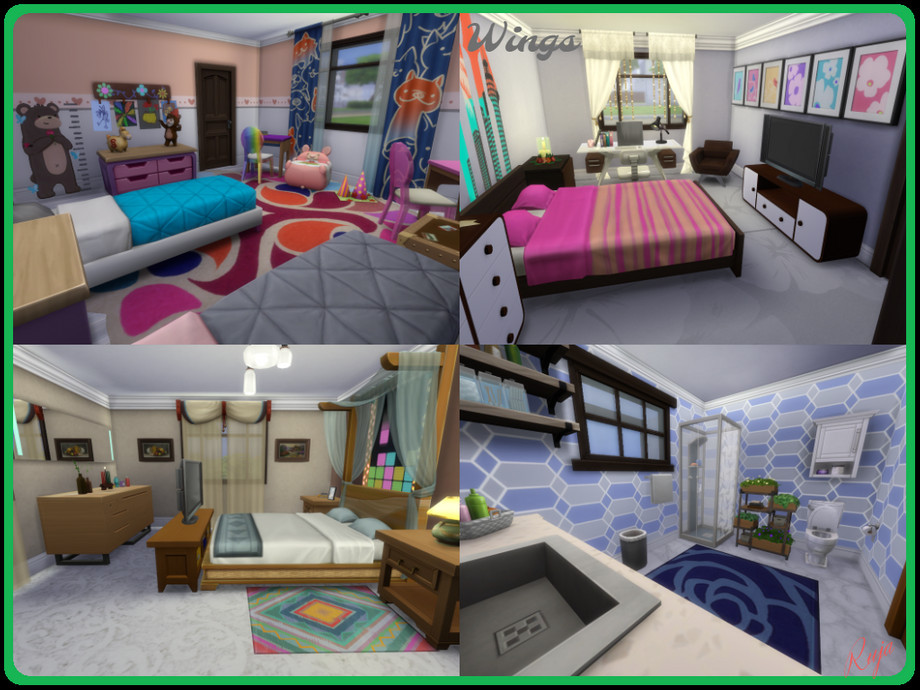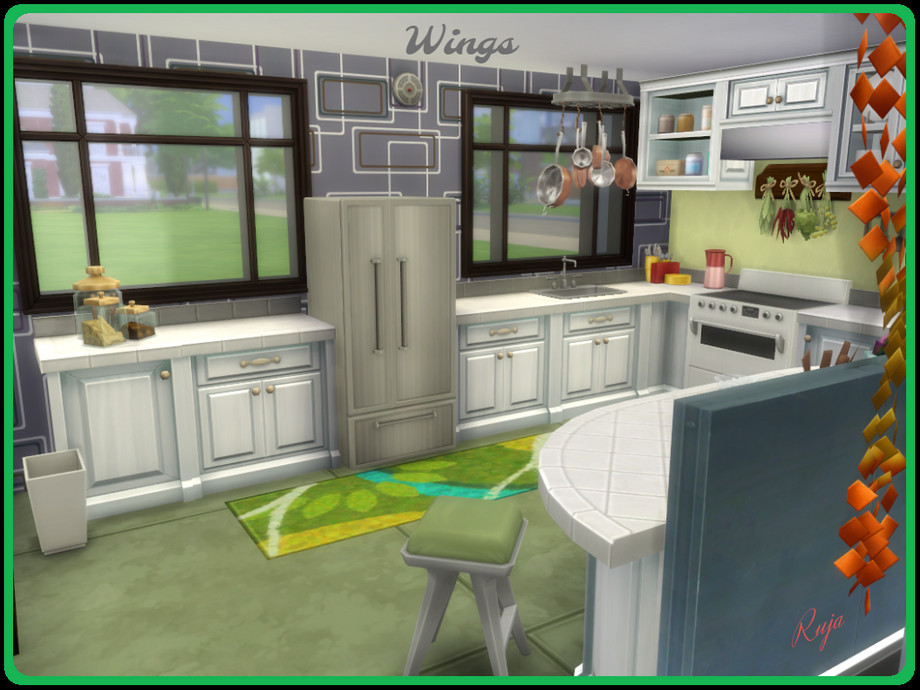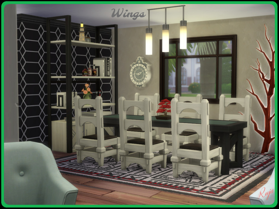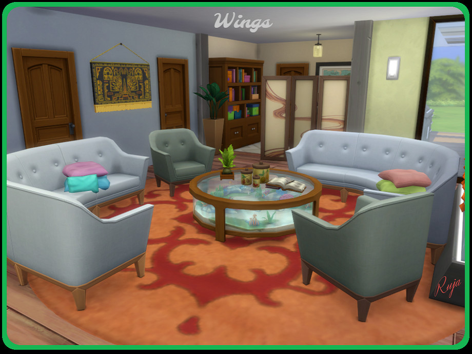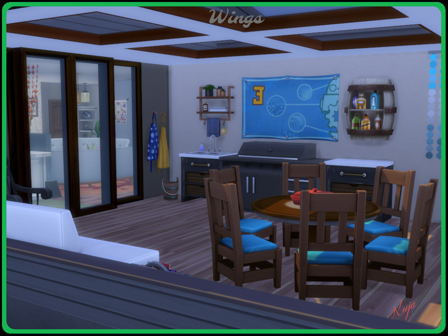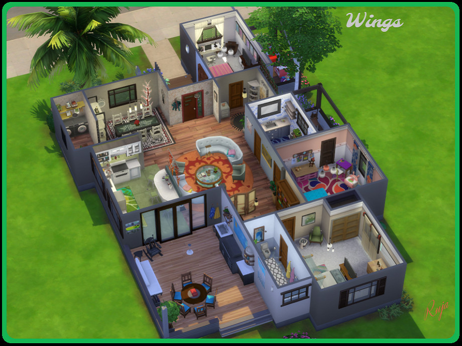Wings, a home for a large family. It has three bedrooms and two bathrooms. A large open concept living room with kitchen and dining area.