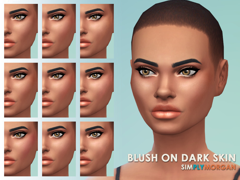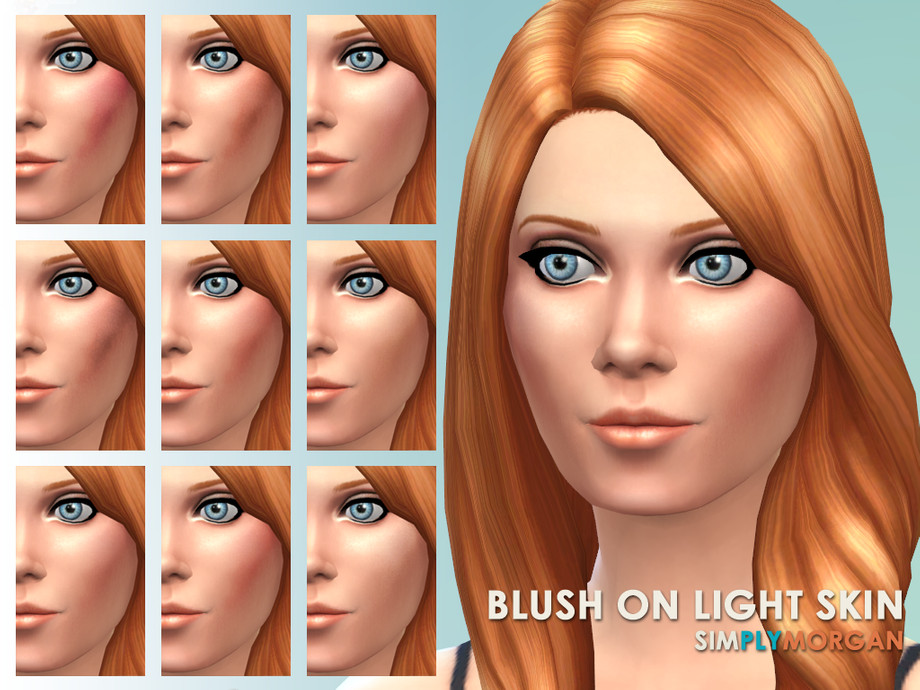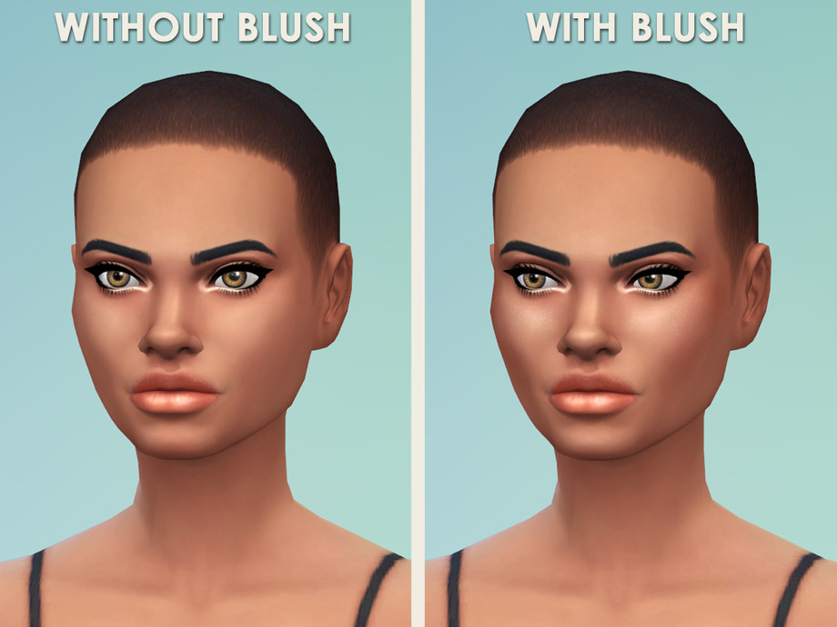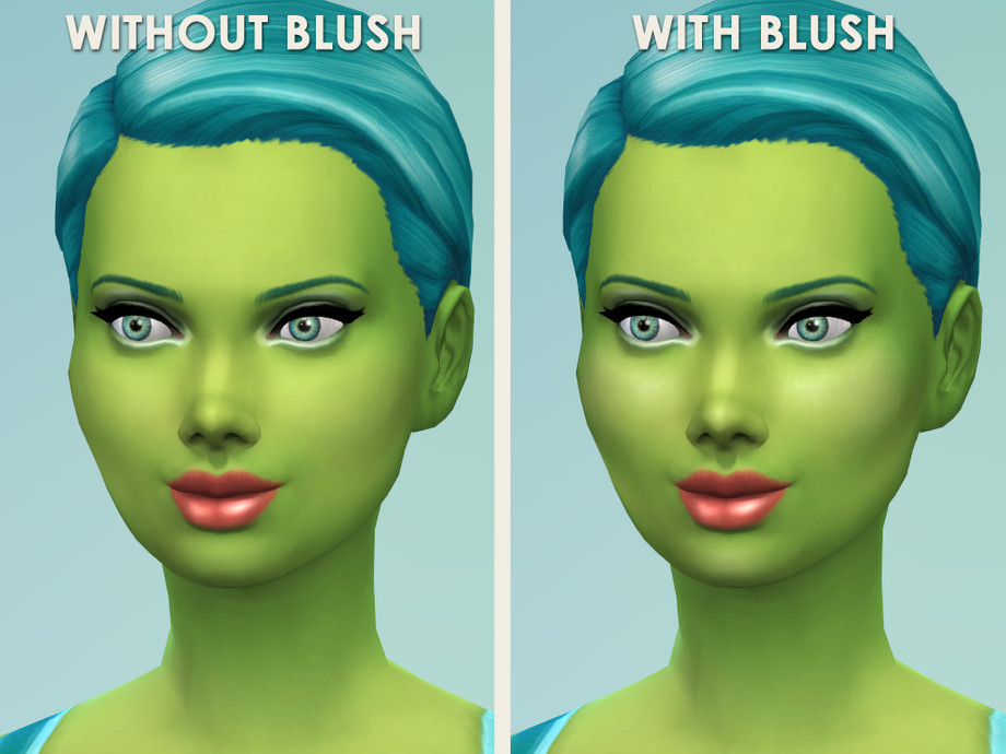 Your sims will be glowing with this new set of blushes! A variety of natural color blushes (plus green and blue) add color to the cheeks, and highlights on the nose, chin, and forehead add a natural glow to the skin.