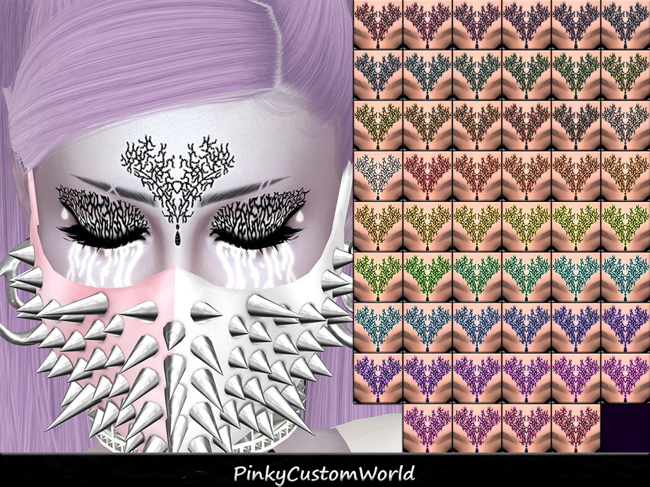 Here is a part of my last Simblreen 2022 treat. Black forehead decor with a backshadow of color, matching the rest of the Vampirella Makeup Set. In this version I have added slight glitter effect in the decor. Sadly, due to the game limitations the glitter will be less visible for non HQ mod players