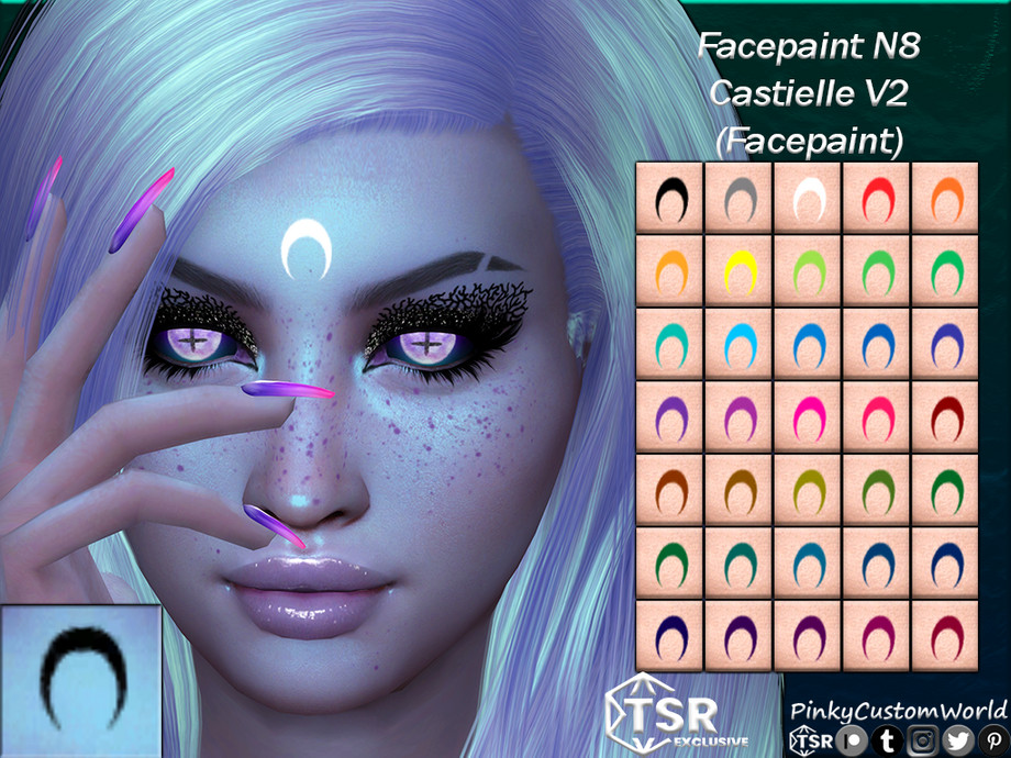Moon crest forehead facepaint in a wide variety of light and darker colors