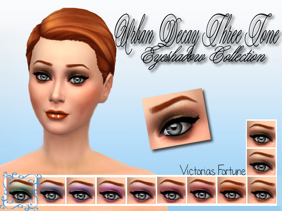 Using three tones of one color gives your sim a beautifully blended eye shadow. This is the aqua color in the Victorias Fortune Urban Decay Three Tone Eye shadow Collection. I hope you like these creations.