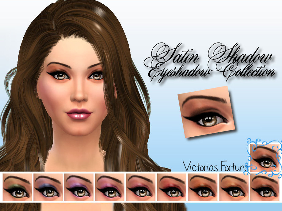 Here is a new soft, satin looking eye shadow with brilliant color for your favorite sim. The Victorias Fortune Satin Shadow Collection comes in 10 different shades and are a stand alone item. I hope you like them!