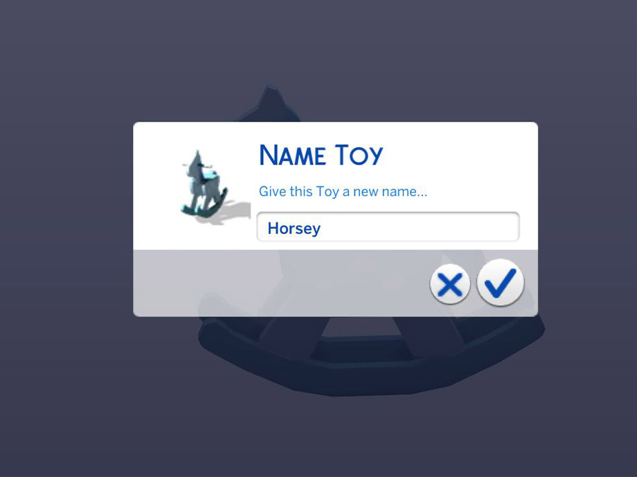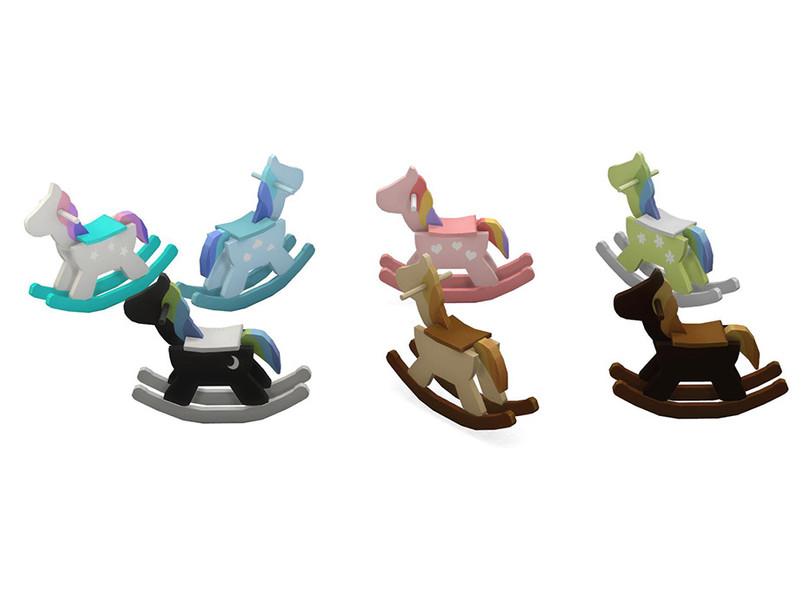 This fully animated functional rocking horse can be used by sims of all ages.Toddler, children, and adult with a childish trait will gain special moodlets after playing. Additionally, toddler sims can name and nap on the horse.They will nap for 1.5-2 hours, they will also do this autonomously (unless you have my toddler bunk bed installed, and you assigned the top bunk to this specific toddler, then they will always choose the top bunk over the rocking horse when they are sleepy).
