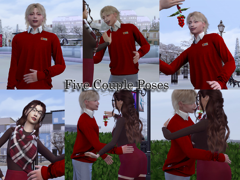 Place 2 teleporters wherever you wish your couple to be. Then click on your sim, then pose by pack and choose [Supernova.trait] 11. Mistletoe Kisses. You do not need new teleporters for each group of poses.