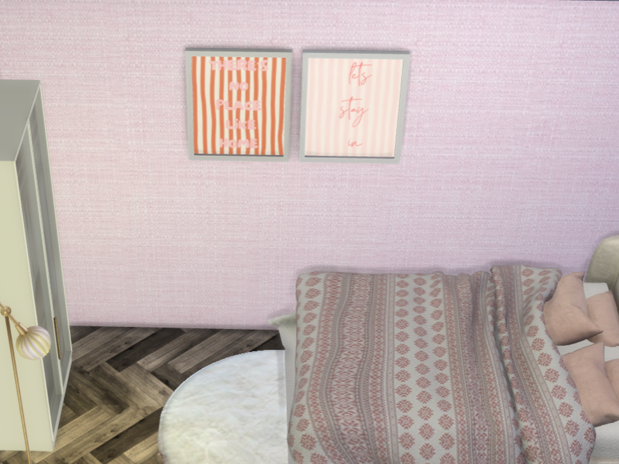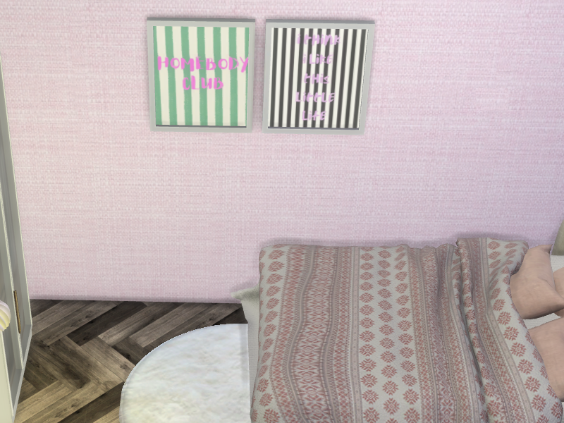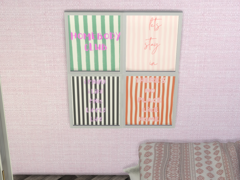 Add playful colorful personality to your Sims walls with the Homebody Vibes wall art set!! Perfect for teen & adult bedrooms or any lively corner, this set includes 4 swatches: