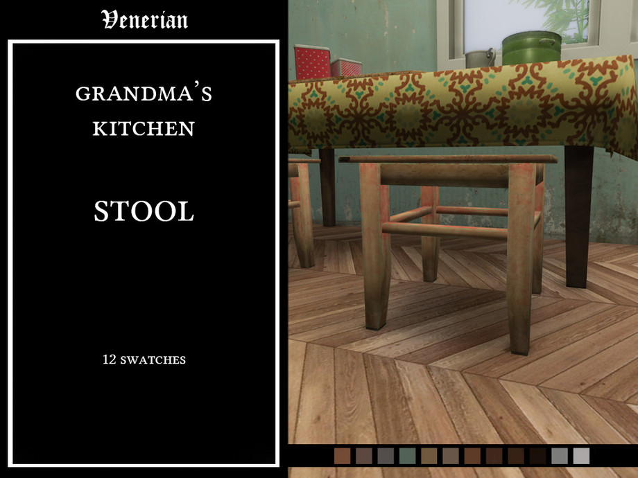 An old kitchen stool. It's uncomfortable to sit on, you might get a splinter, and one of the legs are wobbly.
