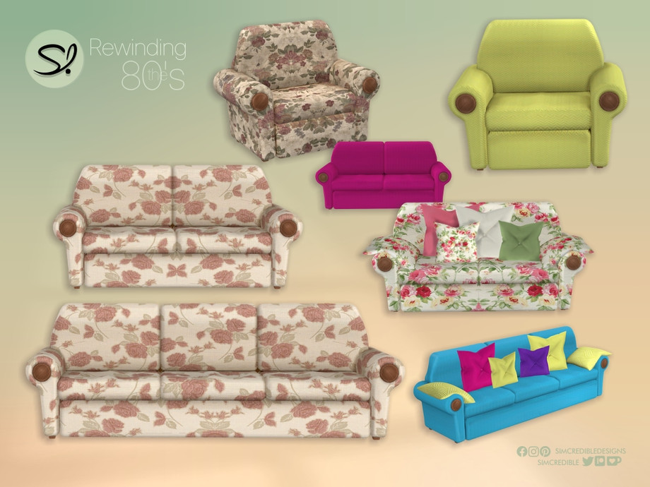 This cozy living room has warm woods, soft florals or powerful neon colors, and that charm that made that decade so unforgettable. TV and cassette deck are ready to play your favorite mixtape, and the coffee table is there to place your messy stuff.