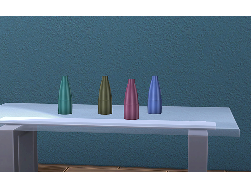 Shiny simple bottle with a border. Part of Adelina set. 4 color variations. Category: Decorative - Clutter.