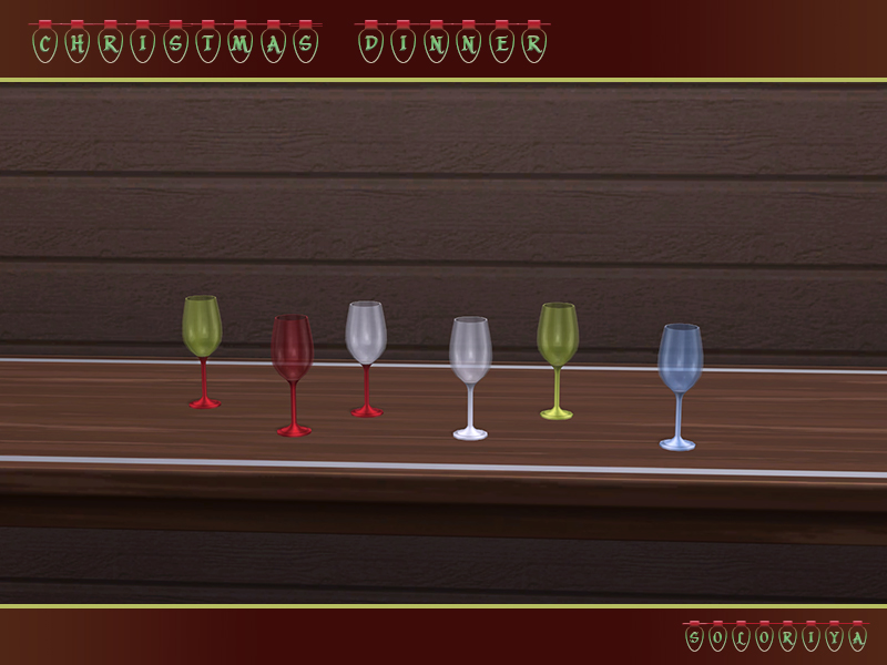 Holiday wine glass. Part of Christmas Dinner set. 6 color variations. Category: Decorative - Clutter.