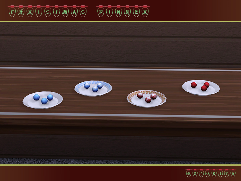 Plate with decorative holiday balls. Part of Christmas Dinner set. 4 color variations. Category: Decorative - Clutter.