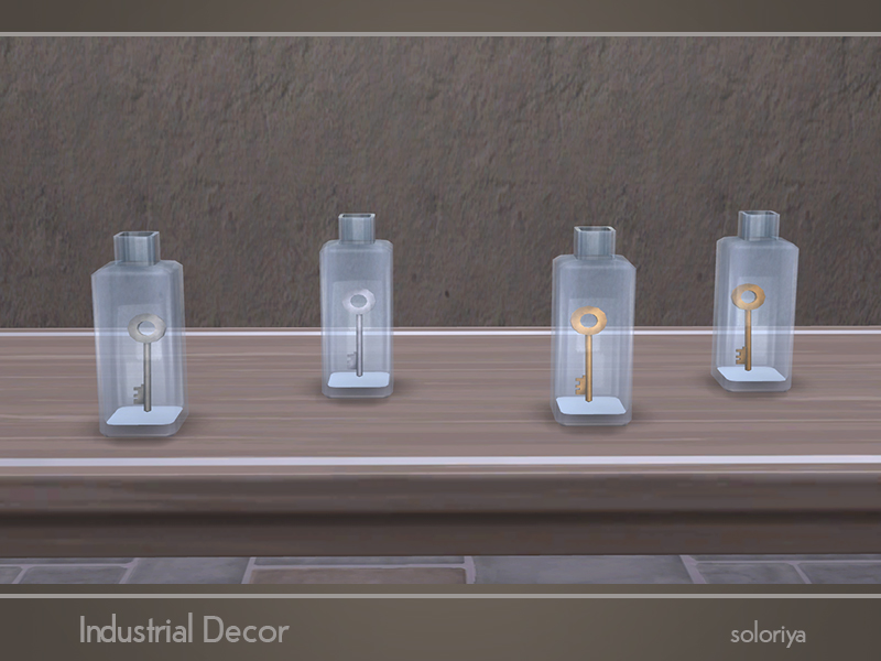 Glass bottle with a key inside. Part of Industrial Decor set. 4 color variations. Category: Decorative - Clutter.