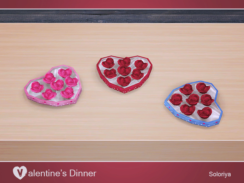 Seven roses in a heart box. Part of Valentine's Dinner set. 3 color variations. Category: Decorative - Clutter.
