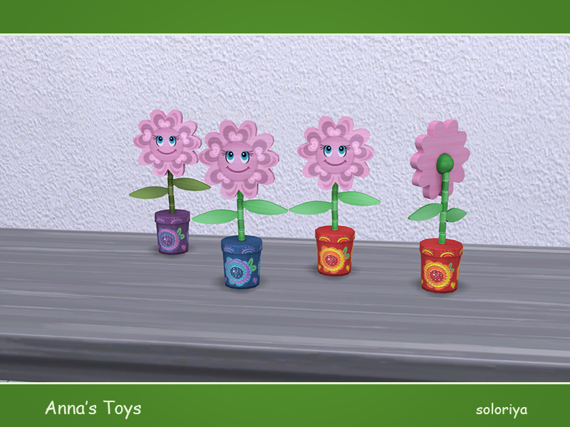 Decorative smiling table flower. Part of Anna's Toys set. 3 color variations. Category: Decorative - Clutter.