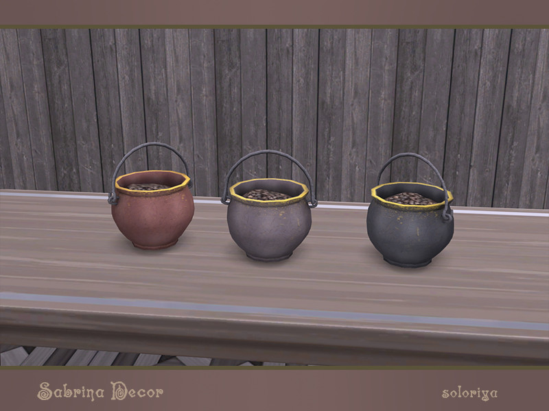 Small cauldron, table decorative item. Part of Sabrina Decor set. 3 color variations. Category: Decorative - Clutter.