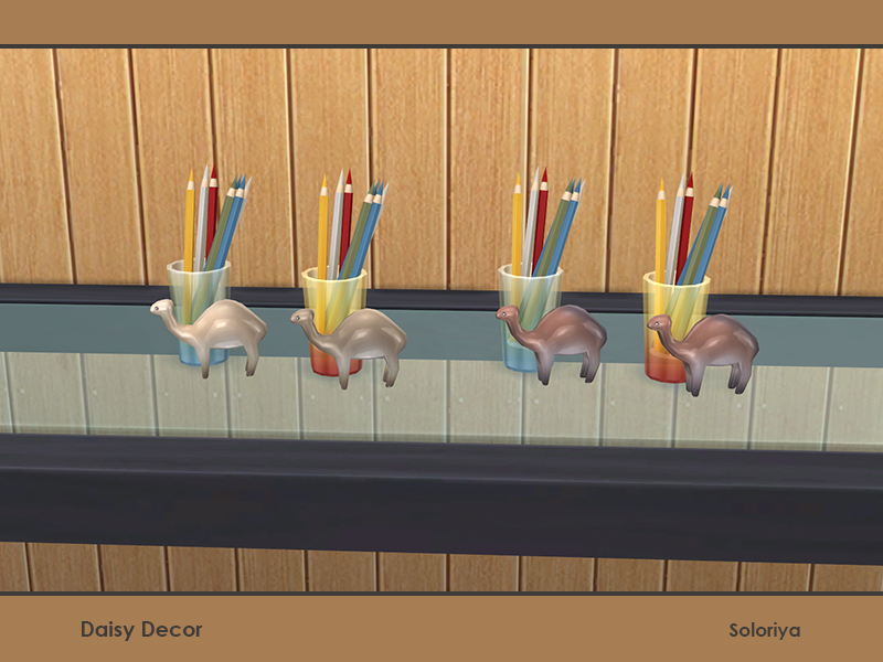 Pencils in a glass with a porcelain camel. Part of Daisy Decor set. 4 color variations. Category: Decorative - Clutter.
