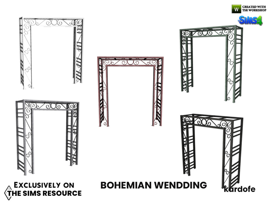 Wrought iron arch, decorative, sim passes under it, in five colour options