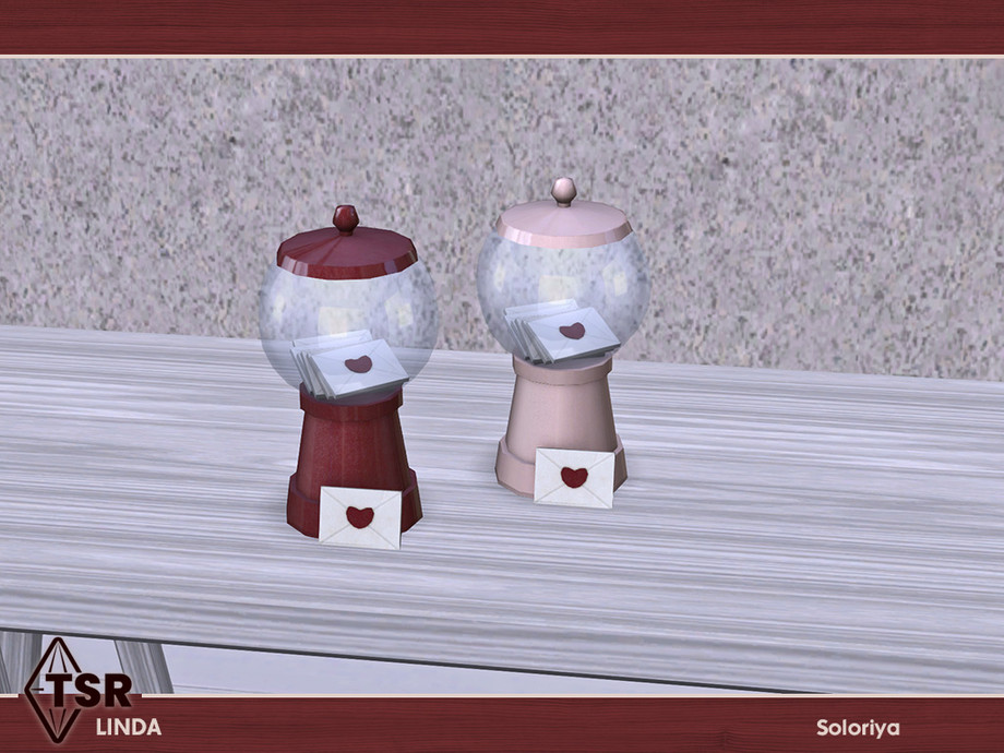 Love letters in a vessel. Part of Linda set. 2 color variations. Category: Decorative - Clutter.