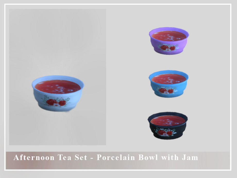 Porcelain Bowl with Jam part of the Afternoon Tea Set comes in 4 colors. Can be found under decorative.