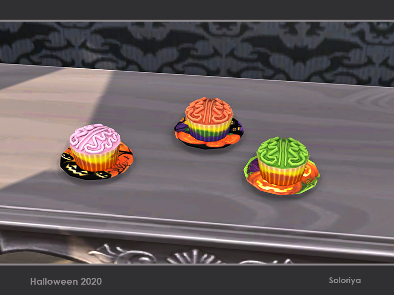 Decorative cupcake with "brain". Part of Halloween 2020 set. 3 color variations. Category: Decorative - Clutter.