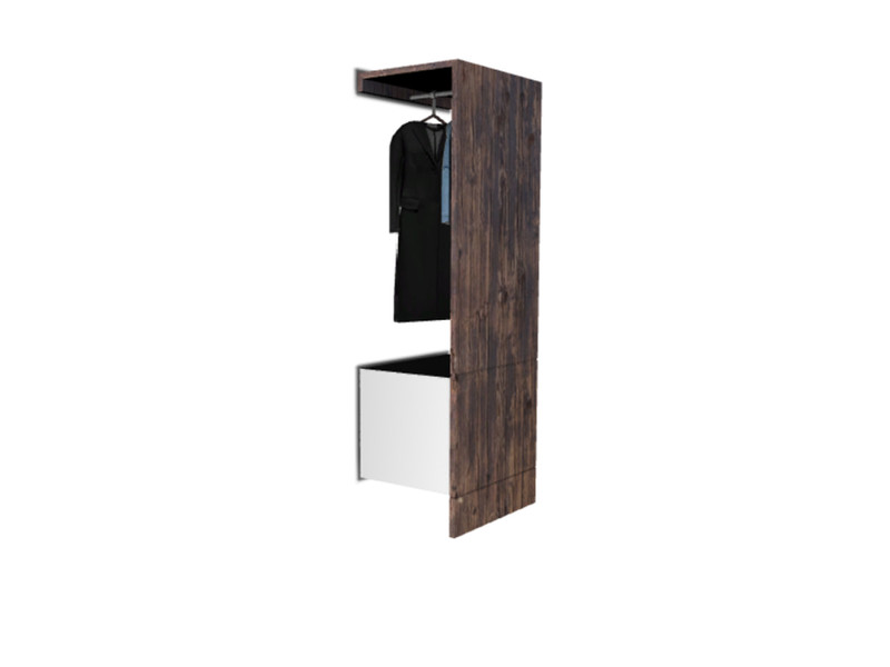 Modern wardobe in wood and white with decorative coats, to be placed against a wall