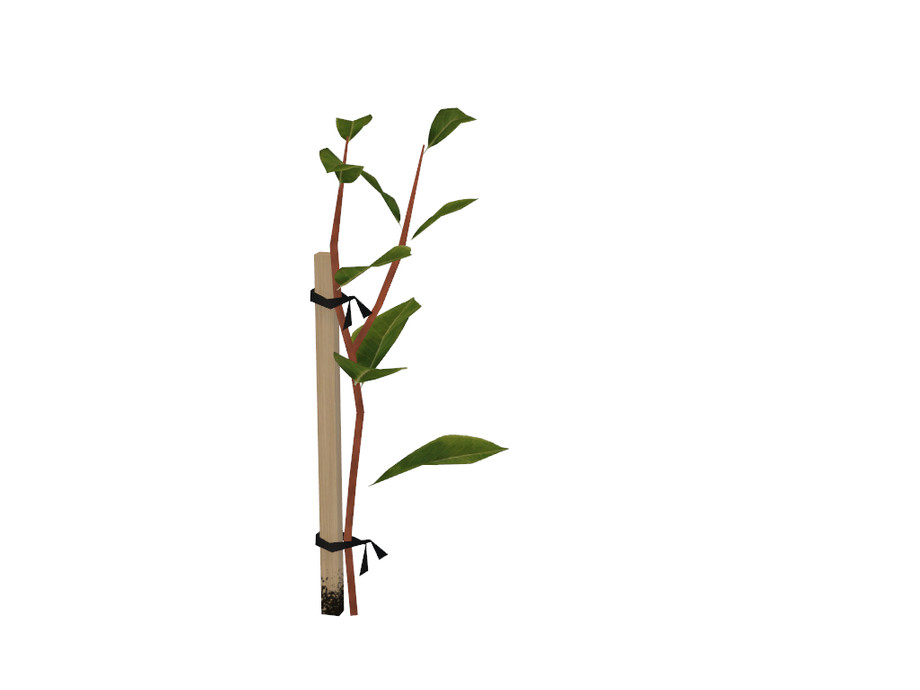 A small tree sapling that has been tied to a stake.