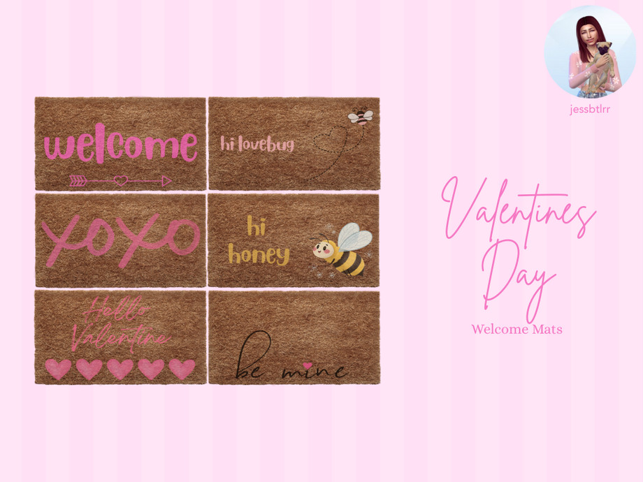 Get your Sims in the Valentines mood with these cute welcome mats! 6 swatches, love themed, to add some romance to your builds!