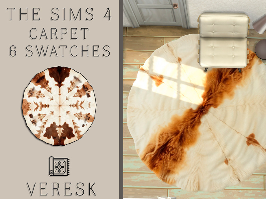 This round rug with a cozy beige and brown pattern will add warmth to any interior in The Sims 4. Six color options to suit any style.