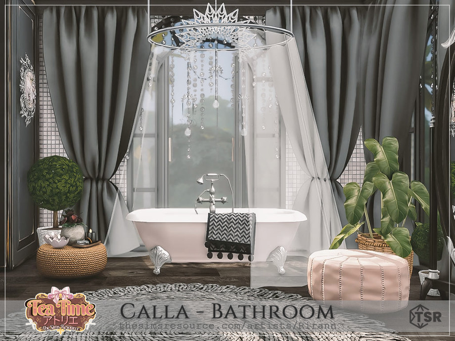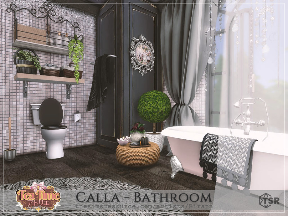 Calla is a cozy bathroom in black, white, beige, and pink colors