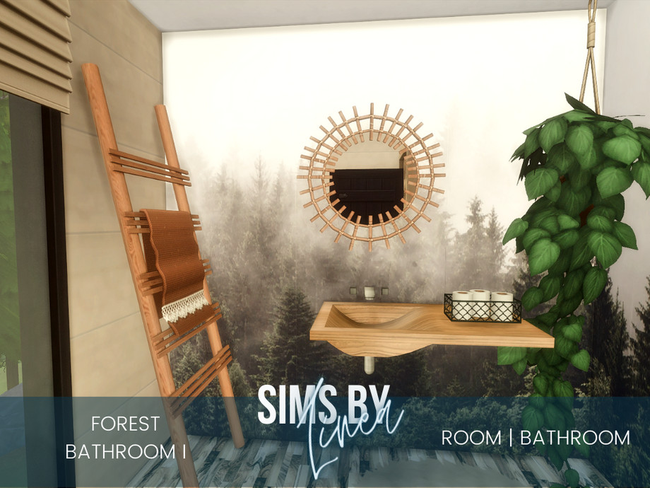 Warm tones and natural materials are the perfect ingredients for a sustainable and modern bathroom. The forest wallpaper and the plants complete the nature-loving look.