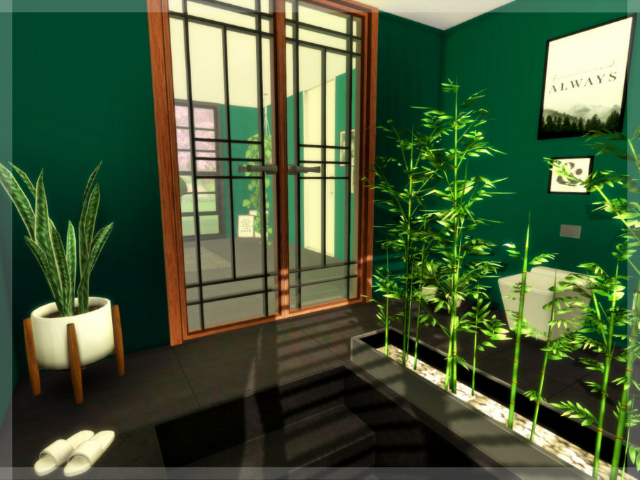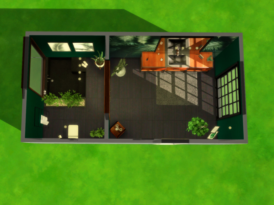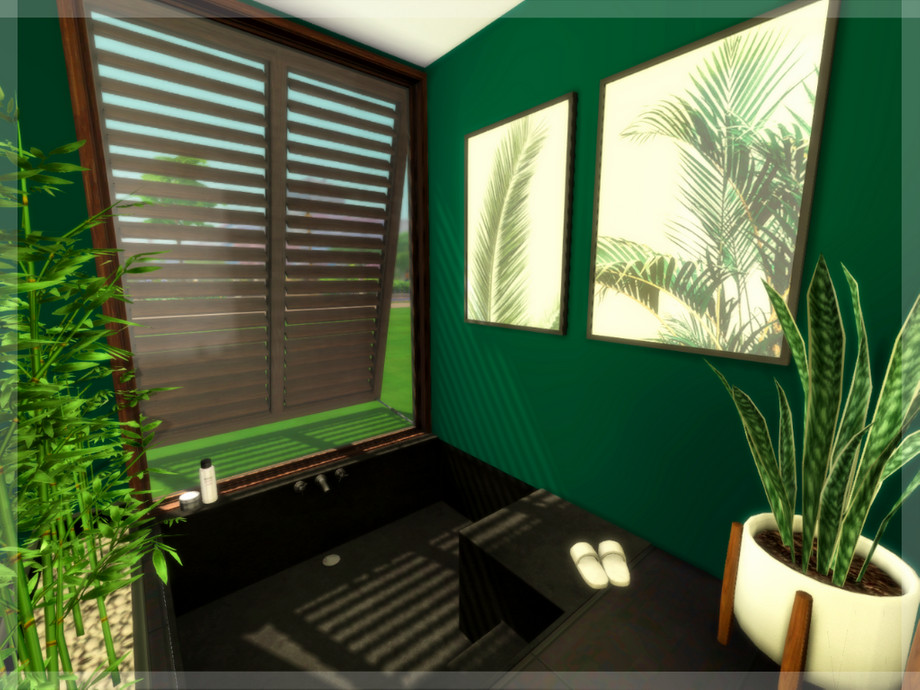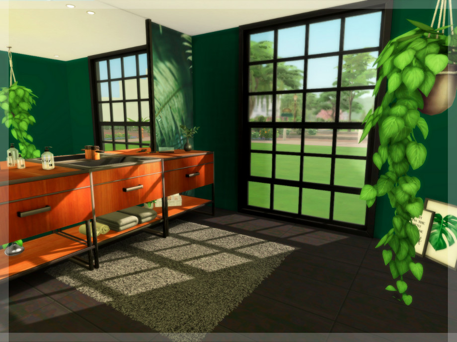Sunken bathtub anyone? Regardless if the sun shines or it's raining cats and dogs, this bathroom is a true green oasis that will always give your Sims a place to relax.