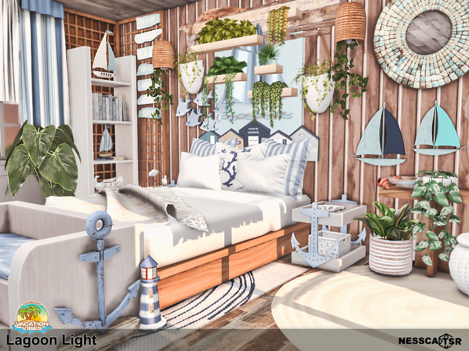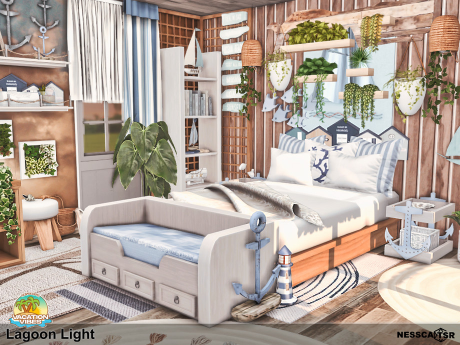 Sims 4 — Lagoon Light by Nessca — Lagoon Light is a bedroom made especially for the Vacation Vibes collection for TSR.