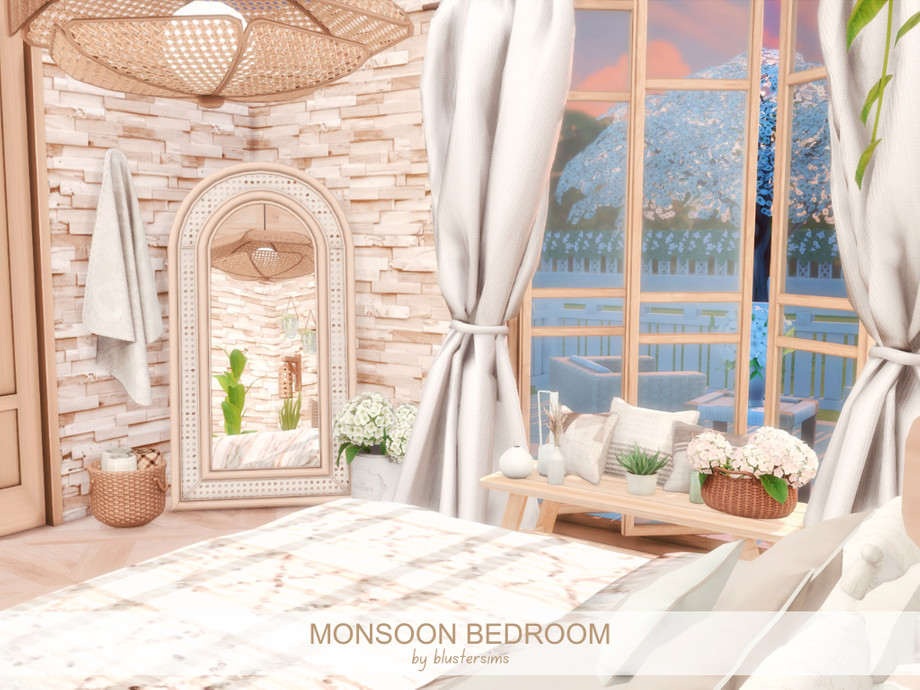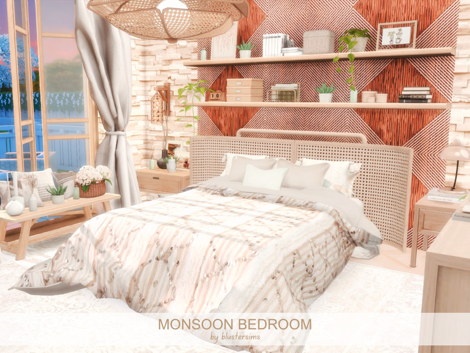 The Monsoon Bedroom is a serene, sun-washed retreat layered in soft neutrals, woven textures, and lush greenery. Natural light, warm wood, and airy fabrics create a calm, rain-kissed sanctuary that feels cozy yet effortlessly fresh.