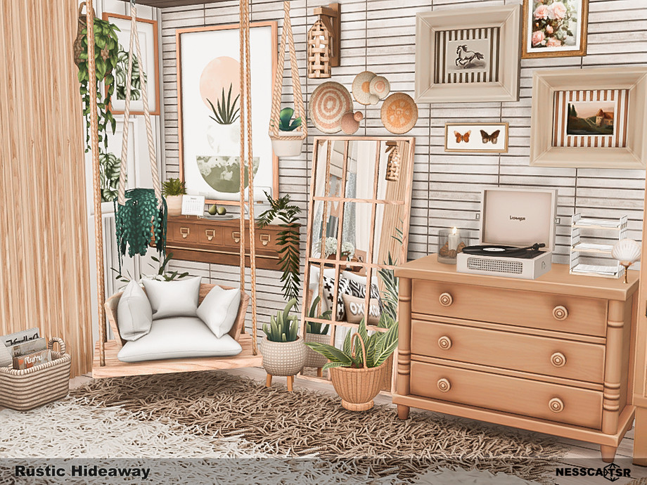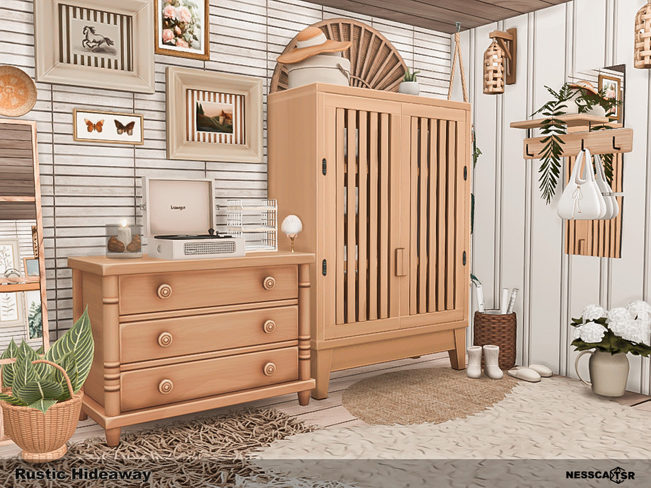 Rustic Hideaway blends warm wood tones, soft textiles, and gentle natural light into a cozy countryside bedroom filled with charm. Functionality, comfort and aesthetics, you will find it all in this bedroom. Fave fun!