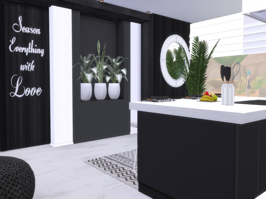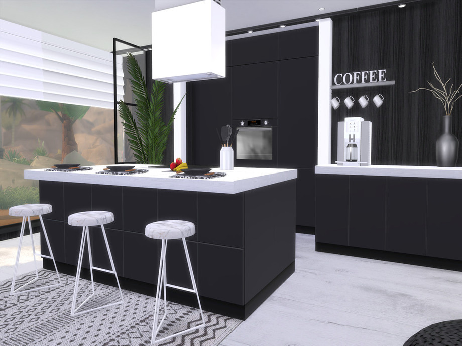 Black White Kitchen is a fully furnished and decorated kitchen.