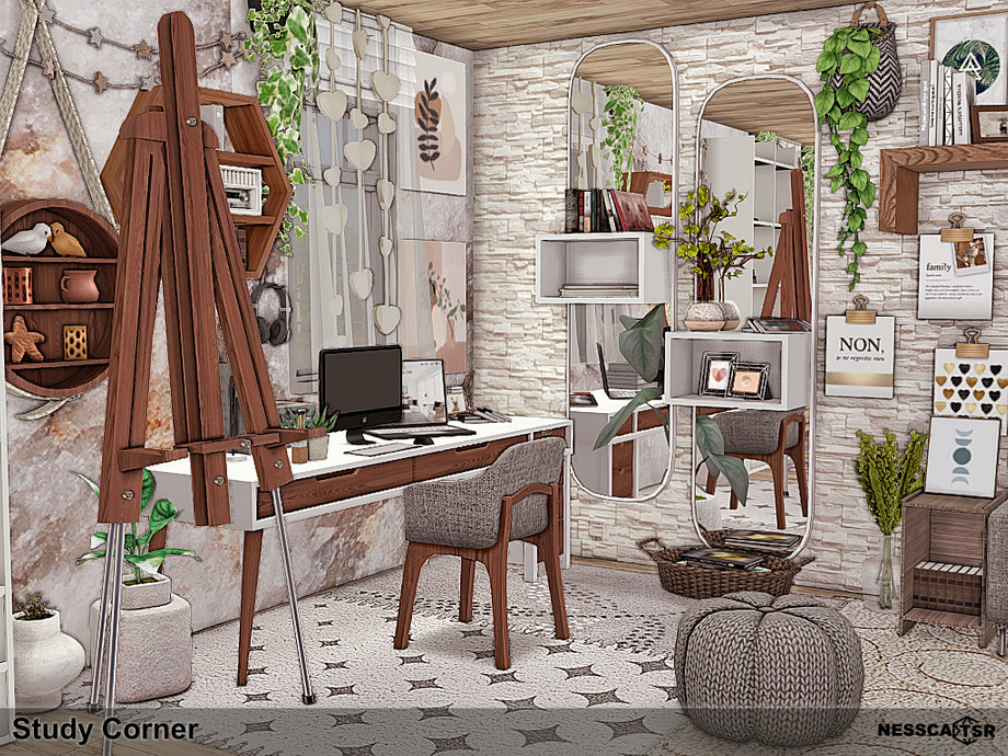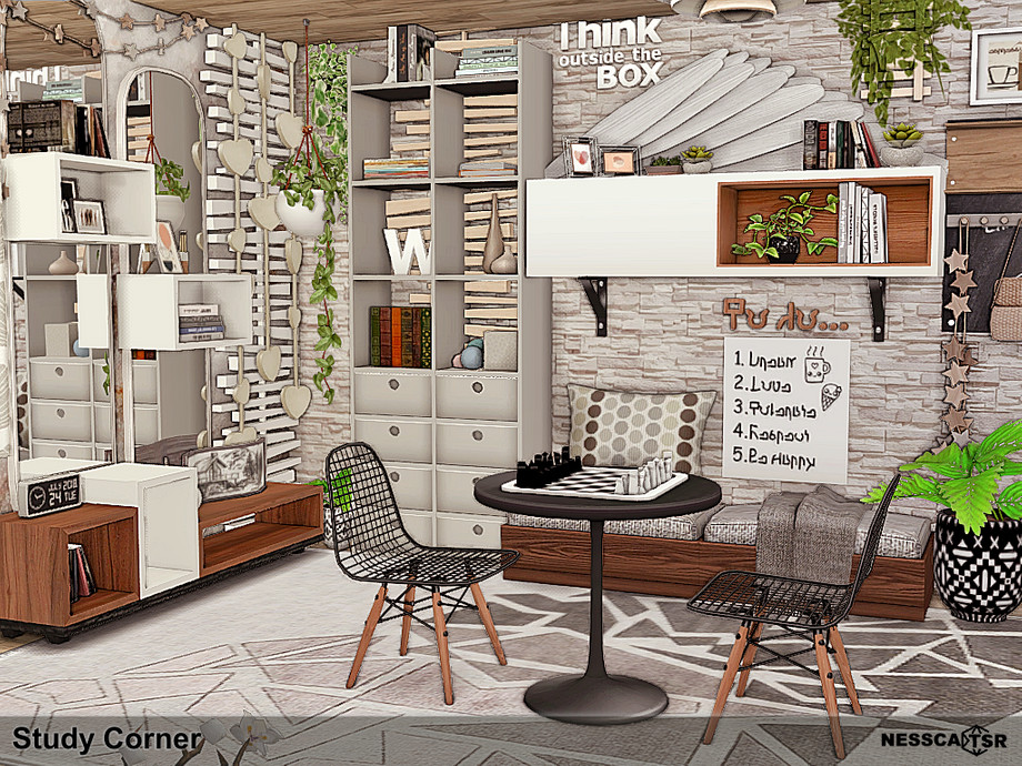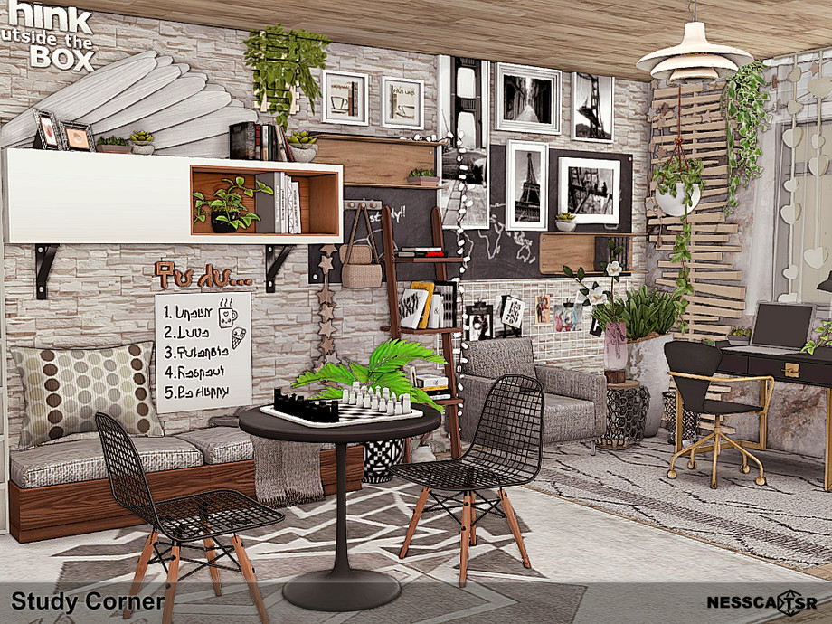 Study Corner is a modernist, elegant office. You can develop your painting and chess skills, work or play at two computer stations, and sit comfortably with a book in the reading corner. Have fun!