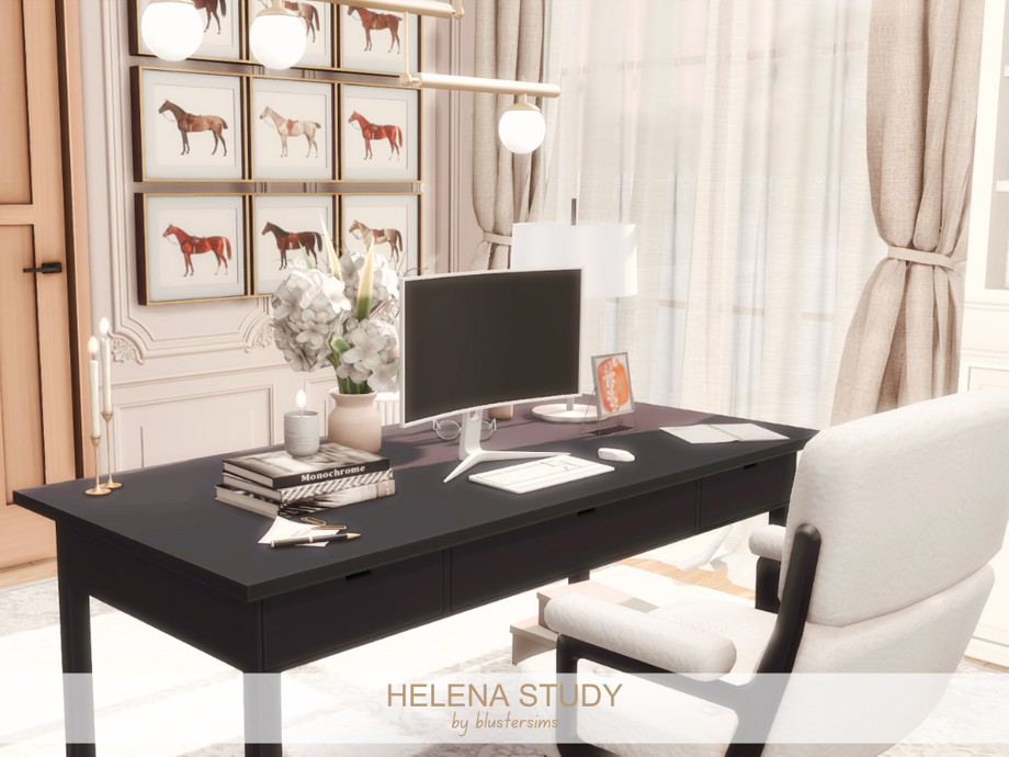 The Helena Study is a light-filled, elegant home office blending soft neutrals, warm wood, and modern details for a calm, refined workspace.
