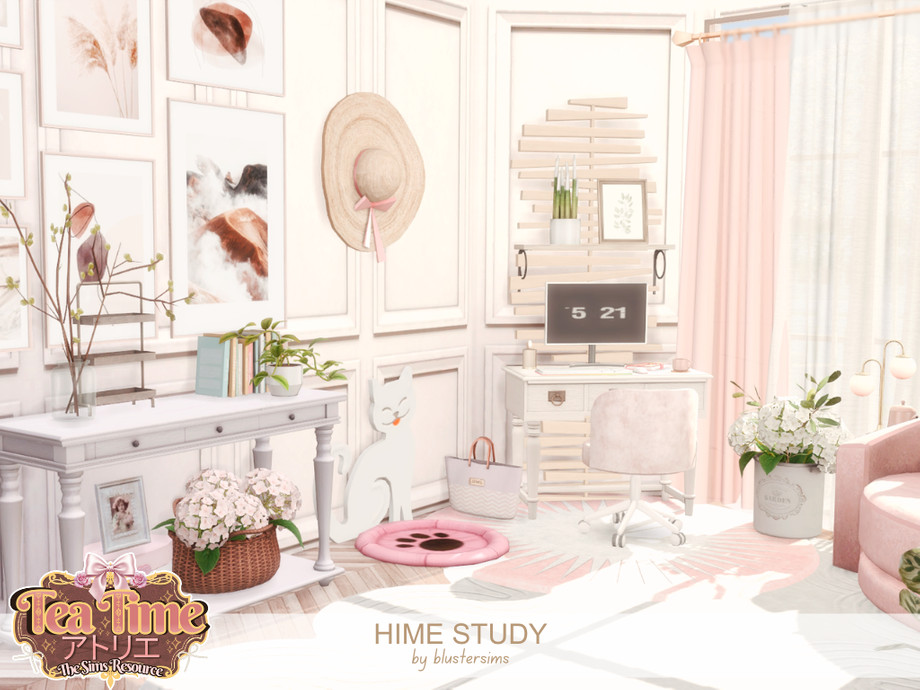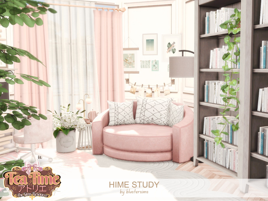 Hime Study is a soft, pastel inspired home office set featuring blush seating, light wood accents, and delicate decor. Designed to feel cozy and elegant, it creates a bright, serene space perfect for studying or creative work.