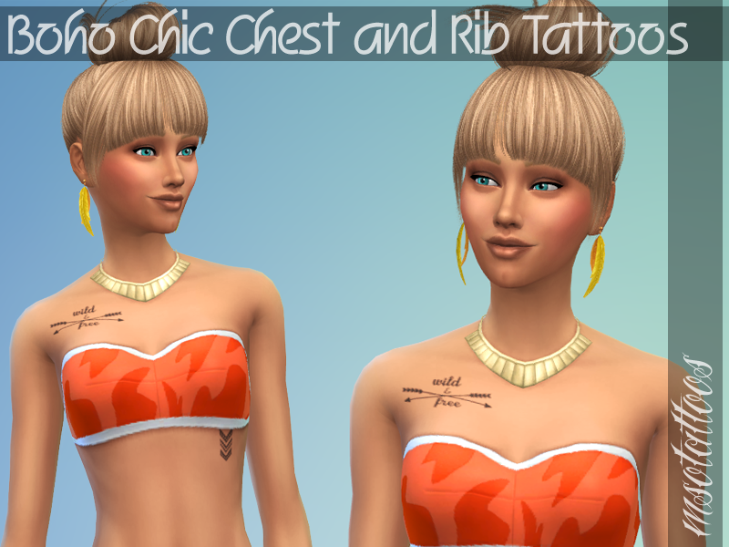 Sims 4 — Boho Chic Tattoos Set by luvjake_ — For females only. The tattoos match all skintones.