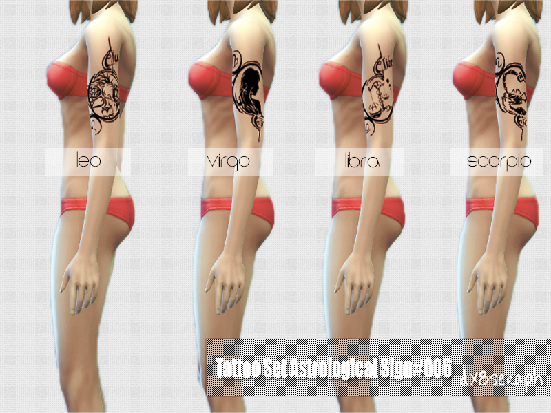 - Female Left Arm Tattoos with AstrologicalSign [Standalone CC, with 12 swatch]